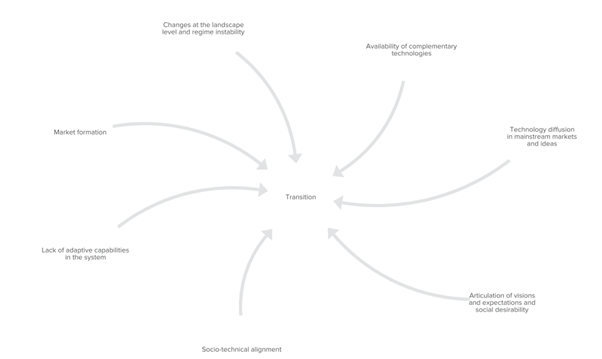 We can then ask: what are the “drivers” of transition in a particular system or context? An interesting 2018 paper by systems scientists from Europe and the USA synthesising more than 20 years of research in the field provides intriguing insights.